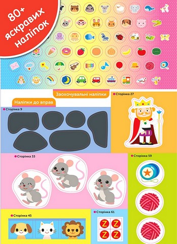 80+ яскравих наліпок використовуються в завданнях в ролі винагороди за виконану працю!