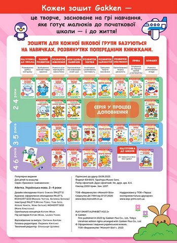 Gakken. Розумні ігри. Українська мова. Абетка. 2–4 роки + наліпки і багаторазові сторінки для малювання 100516