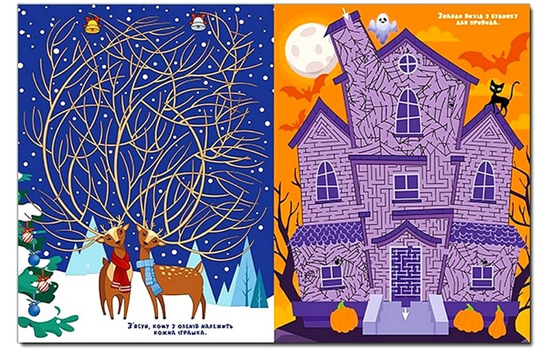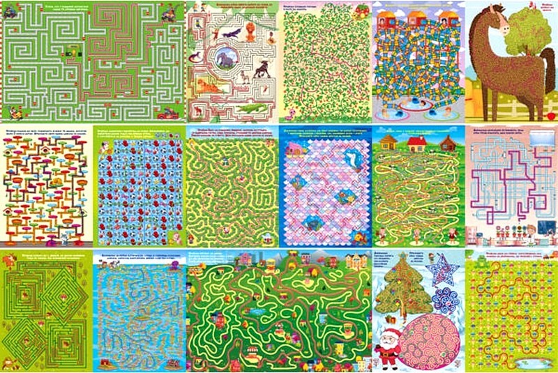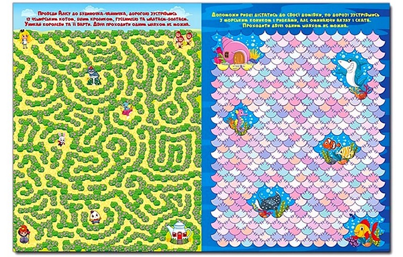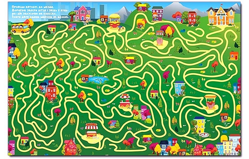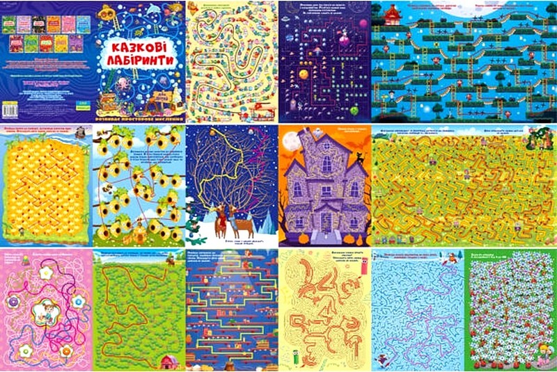 Вашій увазі пропонуються різноманітні лабіринти. Під час захопливих і пізнавальних занять дитина навчиться в ігровій формі справлятися з різними завданнями.