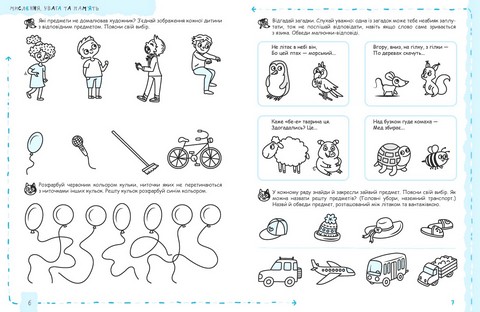 Робочий зошит для дітей середнього дошкільного віку. Укладено за Базовим компонентом дошкільної освіти та чинними програмами розвитку дитини. Спрямований допомогти комплексно розвинути різні види мислення та пам’яті, а також увагу, уяву та мовлення в дітей п’ятого року життя під час індивідуальних і групових занять.
