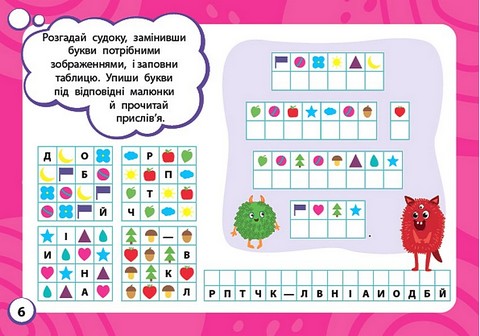 Із книжкою «Завдання-головоломки» дитина цікаво та з користю проведе час, адже розгадуватиме головоломки, шифрограми й ребуси, доповнюватиме логічні ланцюжки, шукатиме тіні предметів або їхні частинки, читатиме прості слова й клеїтиме наліпки. Робота з виданням допоможе покращити дрібну моторику пальців рук, розвине увагу та уяву, потренує пам’ять і посидючість, виховає старанність та акуратність під час виконання завдань.