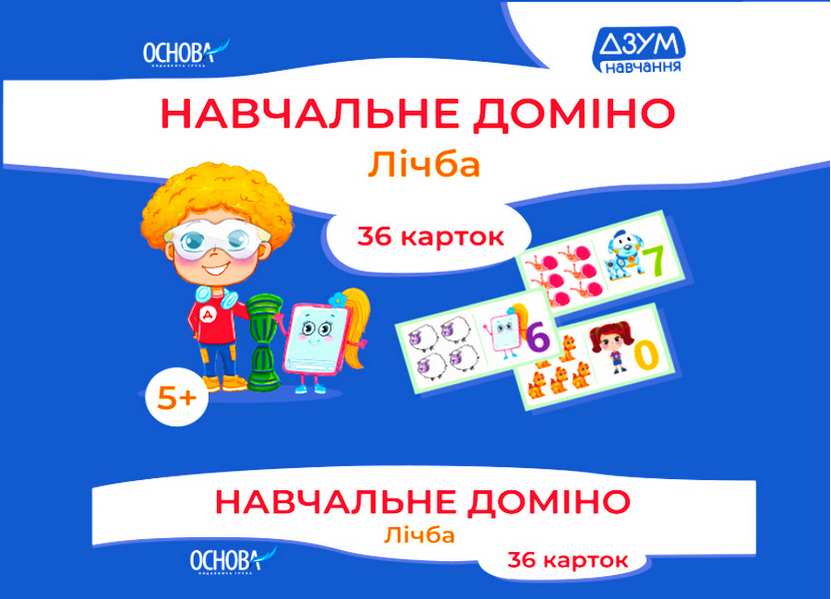 НУШ Навчальне доміно Лічба ДЗУМ-навчання 36 карток Основа допомагає дітям вчити математику, мову та світ разом із цікавими персонажами родиною ДЗУМів