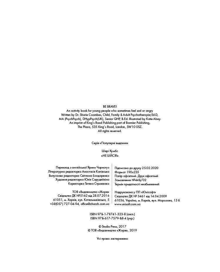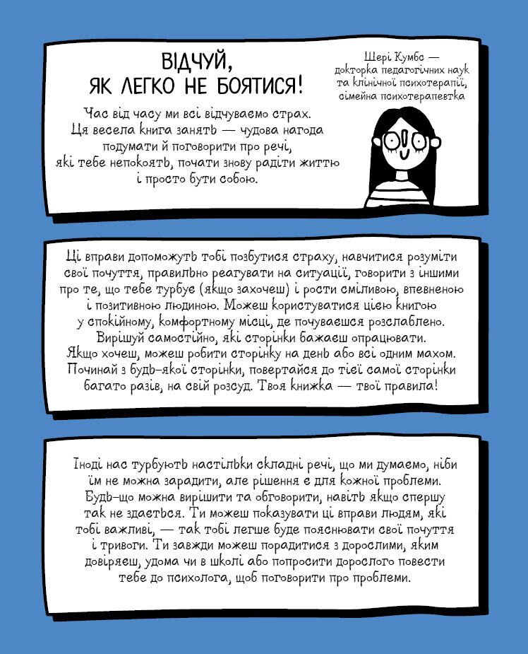 Не бійся! Шері Кумбс Ранок. Час від часу ми всі відчуваємо страх. Ця весела книга занять — чудова нагода подумати й поговорити про речі, які тебе непокоять, почати знову радіти життю і просто бути собою.