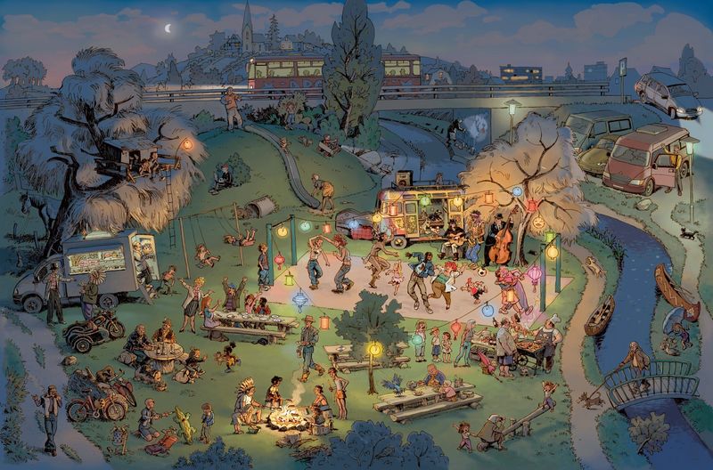 Рано-вранці Пауль, його сім'я та друзі вирушають геть із набридлого міста. На них чекає день пригод, наповнений маленькими та великими історіями. Гайда з ними весело гуляти на природі? Гортаючи цей віммельбух ми побуваємо в гостях у пасічника та вівчаря, побачимо корів на пасовищі, зазирнемо у табір індіанців та влаштуємо чудове вечірнє свято з грилем!