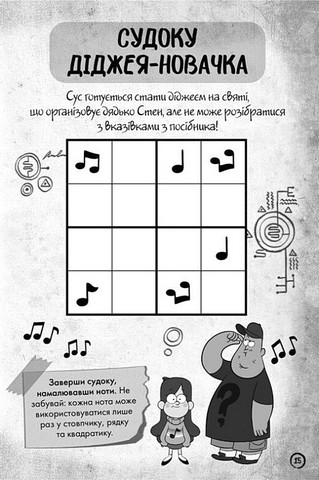 У Ґравіті Фолз, як завжди, відбуваються дивовижні речі. Із цієї книжки ви дізнаєтесь про неймовірні пригоди Діппера, якому довелося протистояти своїм клонам, і Мейбл, яка намагається позбутися підступного Ґідеона. До того ж на читача очікує безліч цікавих загадок і завдань!
