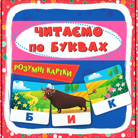 Набір « Розумні картки. Читаємо по буквах» включає 30 двосторонніх мнемокарток (20 слів), які допоможуть малюкові навчитися читати по буквах. Ці картки — пазли. Дитині необхідно знайти три частини однієї картинки, з'єднати їх, а потім прочитати складне слово.В ігровій формі малюк навчиться розрізняти голосні та приголосні звуки, читати слова й складати описову розповідь про зображене на картинці. Заняття з картками сприяють формуванню та вдосконаленню навичок, необхідних для читання та повноцінного розвитку мовлення.
