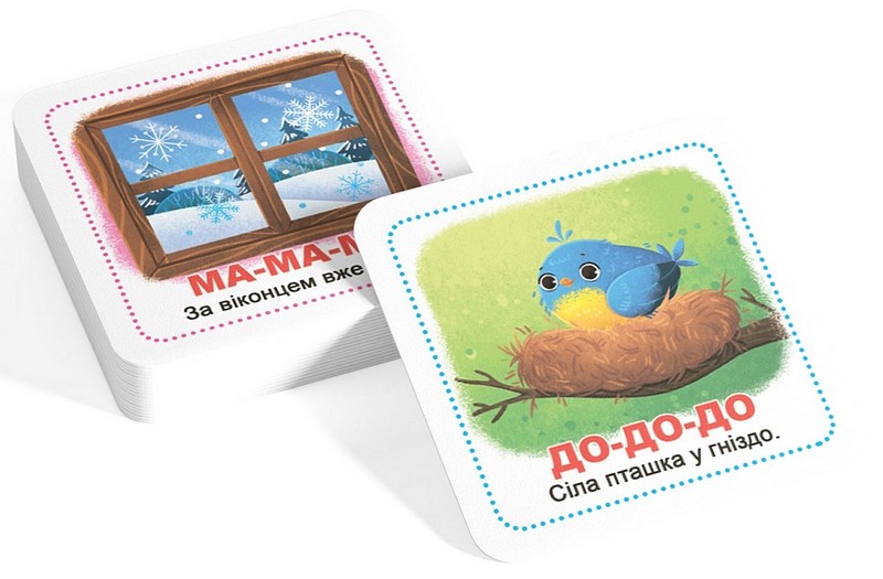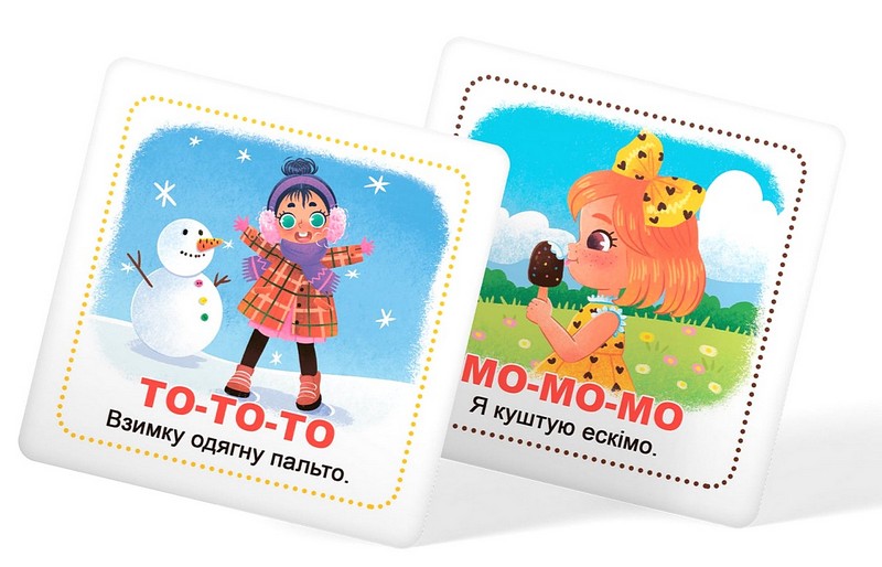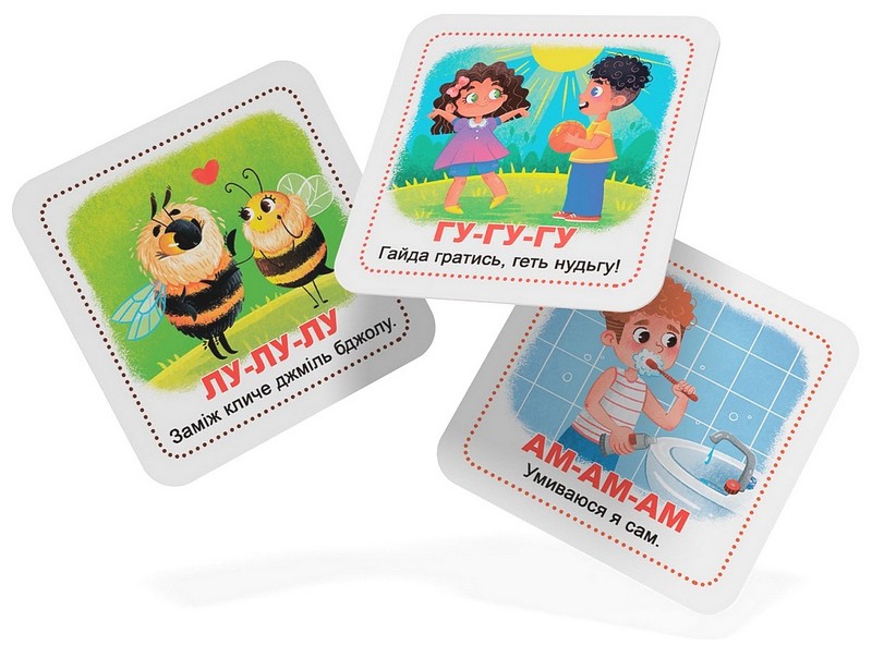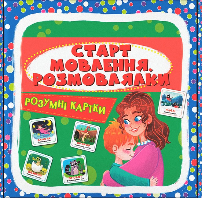 Набір "Старт мовлення. Розмовлялки" включає 30 карток із 60 малюнками та віршиками, ігри з якими посприяють розвитку мовленнєвої активності малюка, навчать його вимовляти прості звуки й склади.