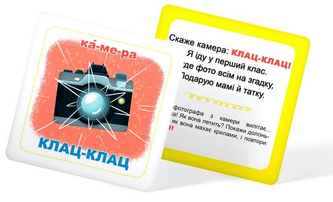 \n– Оберіть картку та промовте звук, який видає об'єкт. Потім запропонуйте дитині кілька карток на вибір, щоб вона вгадала правильну.