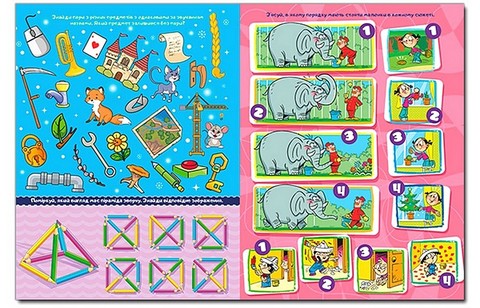 \nЦя чудова книжка дуже сподобається вам і вашій дитині! Вона відкриє дивовижний та цікавий світ знань. Веселі й дотепні, розвивальні завдання та ігри допоможуть розвинути логічне мислення, увагу, пам’ять, уяву, уважність, спостережливість, кмітливість. Дитина навчиться самостійно знаходити рішення та творчо мислити.
