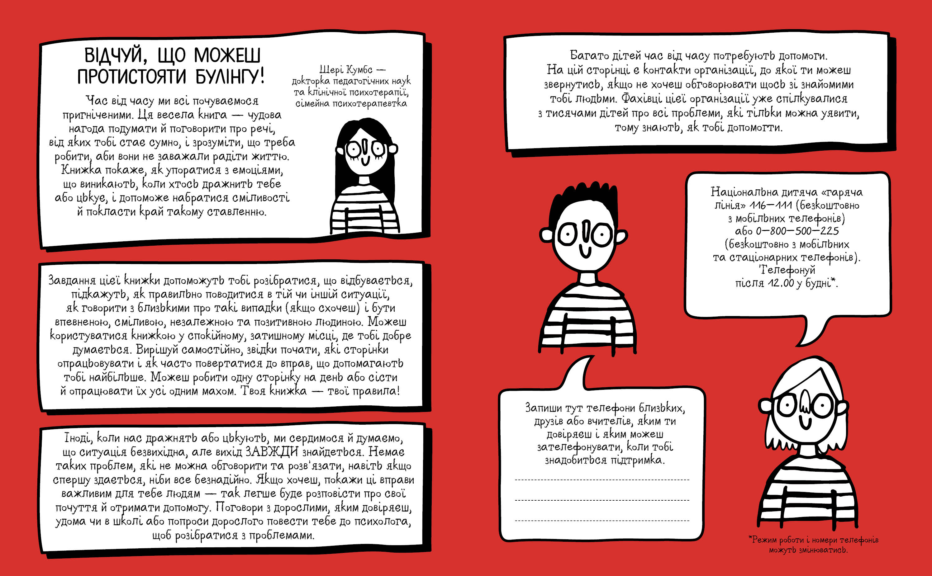 Ти зможеш! Шері Кумбс Ранок. Мотиватор для тих, хто хоче навчитися протистояти образам і агресії. Завдання цієї креативної книжки допоможуть тобі віднайти внутрішню силу й навчитися протистояти агресії та цькуванню. Вмикай креативність, випускай на волю уяву - малюй, пиши, виконуй цікаві вправи, щоб відчути впевненність у собі. Ти все зможешь!