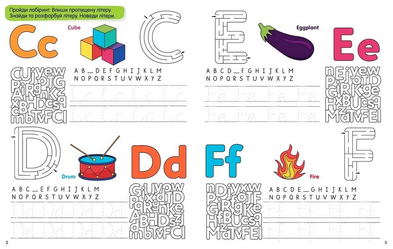 У книжці дібрано вправи, від яких діти будуть у захваті. Графічні завдання (лабіринти, розмальовки, «заховані» літери, великі прописи та ін.) та цікаві мовленнєві вправи, що навчають англійської через гру.
