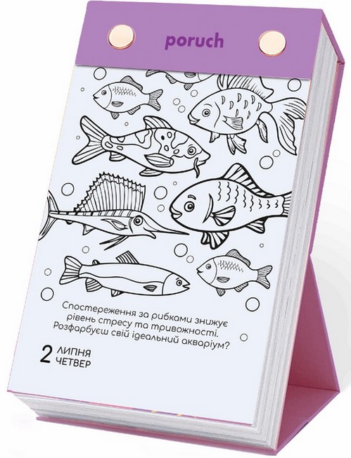 Всередині на вас чекає 365 днів з цікавими завданнями та ідеями. Тут і свята з важливими датами, і веселі челенджі, і вправи на логіку та увагу. Є й антистрес-вправи, і надихаючі афірмації, добірки для розвитку фантазії та навіть маленькі сюрпризи «інше» — щоб дитині завжди було цікаво відривати наступну сторінку.