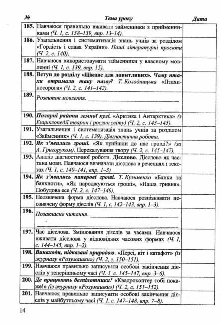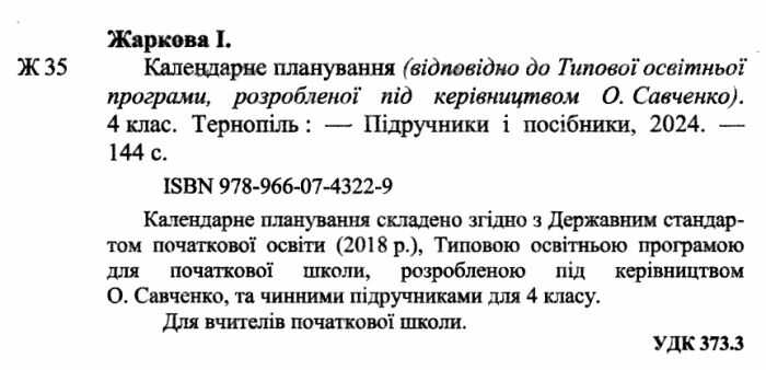 Календарне планування 4 клас НУШ За програмою О. Савченко Авт: І. Жаркова Вид-во: Підручники і посібники 101009