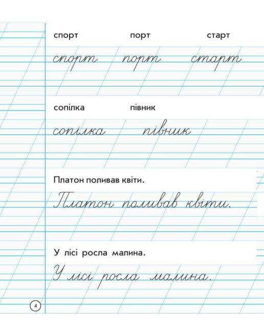 Вправи посібника носять пропедевтичний характер: наведено форми однини й множини, слова з чергуванням голосних і приголосних у корені, спільнокореневі слова тощо. Тексти для списування дібрані від легких за написанням букв, з’єднань і кількістю слів до перевірних, контрольних.