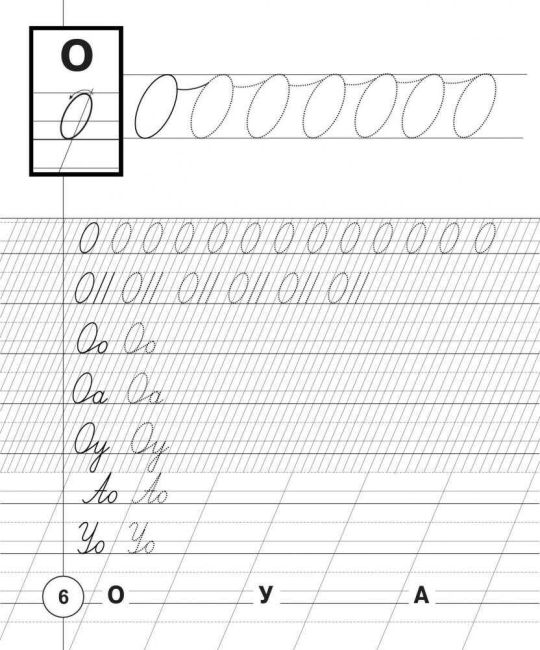 Щоб виробити в першокласника уміння писати правильно і акуратно, навчити його бачити робочий рядок, запропоновано шаблон похилі лінії, розміщені на відстані ширини рядкової лінії, а також окремі слова, речення подано крапочками для наведення. Зошит допоможе учням оволодіти навичками правильного каліграфічного написання букв, слів і речень.
