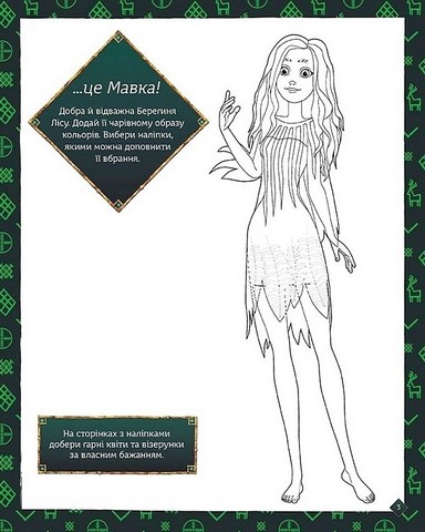 Таємничий Ліс сповнений загадок і неймовірних пригод. Допоможи лісовим мешканцям та їхнім друзям створити неперевершені образи, вибрати вбрання і розгадати всі головоломки. Не стримуй себе: фантазуй, розфарбовуй і клей блискучі наліпки!