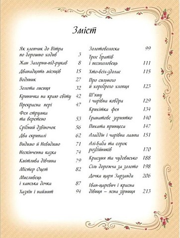 \nУ книзі представлено 30 захоплюючих історій які познайомлять дитину з культурою Франції, Скандинавії, арабських країн, Словаччини та, звісно ж, з найкращими українськими народними казками.