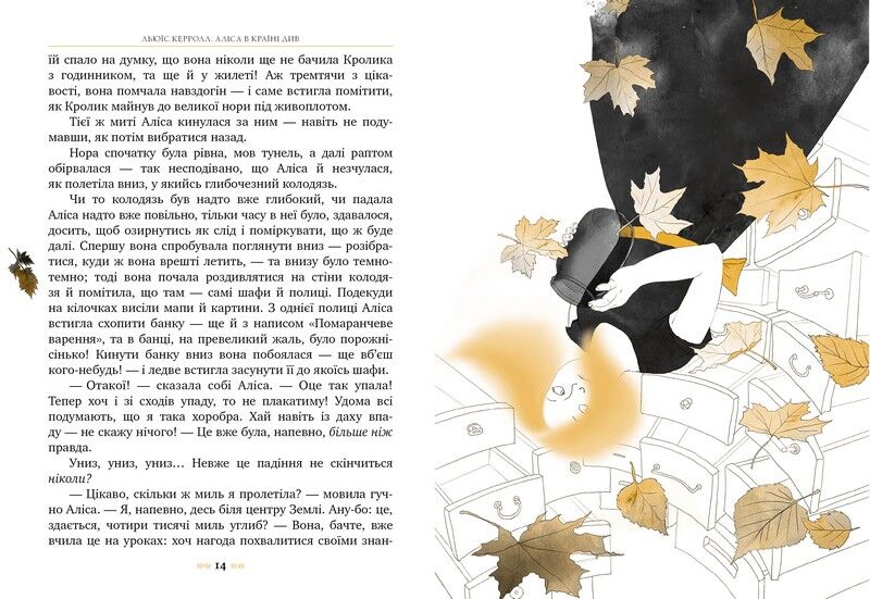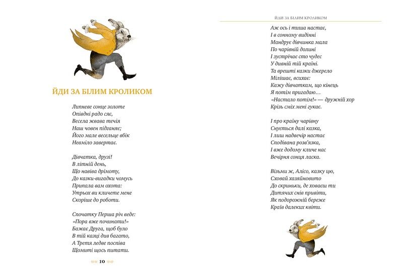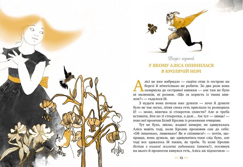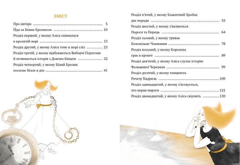 Ця книжка — шедевр дитячої літератури. Ще за життя автора її було перевидано більше ніж тридцять разів. Герої книжки — Капелюшник, Солоний Заєць, Чеширський Кіт та інші стали улюбленими для багатьох поколінь юних читачів і їхніх батьків, діставши прописку в численних прислів’ях і приказках. У захваті від цієї повісті була навіть англійська королева Вікторія. Видання щедро ілюстроване малюнками, що вдало передають дух безсмертного твору.