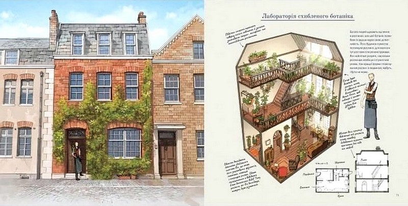 Хто такий пакосний доглядач мостової вежі? Що вирощує відьма у своєму саду? Як поштарю вдалося приборкати дракона-доставника? Розкрийте вміст кожного будинку та його кімнат, а заразом — секрети їхніх мешканців. Оповідь автора проведе вас життям тутешніх персонажів та вкаже на особливості їхньої буденності. А кольорові ілюстрації вкупі з детальними схемами осель допоможуть на мить опинитися в цих фантастичних місцинах.