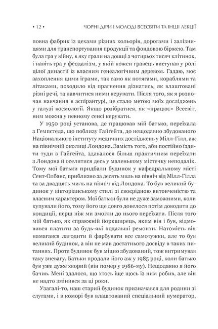 Перед вами збірка наукових нарисів 1976-1992 років. Уперше лекцію під назвою «Чорні діри і молоді всесвіти» науковець прочитав у Каліфорнійському університеті в Берклі. Згодом доповнена лекція стала частиною повноцінної збірки, до якої ввійшли 13 оповідей та розгорнуте інтерв’ю науковця для передачі «Диски безлюдного острова». Книжка є своєрідним продовженням діалогу з читачем, розпочатого ще у «Короткій історії часу». Найвідоміший астрофізик сучасності тлумачить найбільш імовірні моделі устрою Всесвіту, розмірковує про уявний час, про те, як чорні діри можуть дати життя молодим усесвітам, про теоретичну фізику і продовжує розпочаті ще Альбертом Ейнштейном спроби науковців визначити майбутнє Всесвіту.