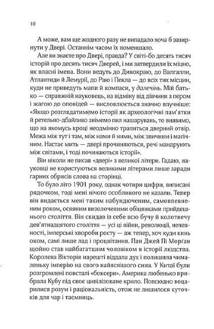 У Дженьєрі є дивний дар: усе, що вона запише, магічним чином здійснюється, от тільки пан Лок хоче, щоб дівчина полишила такі витівки. Від самоти її рятує загадкова книжка під назвою «Десять тисяч дверей», у якій ідеться про інші світи. Аж раптом Дженьєрі розуміє, що їй загрожує небезпека і що історія в книжці тісно з нею пов’язана. Від цієї миті розпочинається дивовижна подорож крізь час і простір у пошуках загадкових дверей.