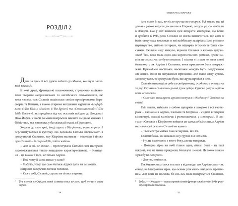 \nShakespeare and Company – це більше, ніж просто книгарня: багато видатних письменників вважають її своїм другим домом. Саме тут зароджуються деякі з найважливіших літературних дружб ХХ століття – і найвизначнішою серед них є дружба ірландського письменника Джеймса Джойса та самої Сильвії. Коли скандальний роман Джойса Улісс забороняють, Біч іде на величезний ризик і видає його під егідою Shakespeare and Company.