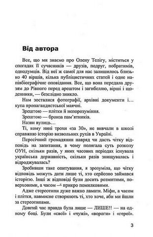 Ця гарна молода жінка могла б зробити блискучу кар’єру в Європі: чи то в танцювальній трупі празького театру, чи то в літературі, чи то на теренах просвітництва, та й просто в світських салонах, де її вважали, за сучасним висловом, «іконою стилю». Її порівнювали з леді Гамільтон, мадам Помпадур і навіть Ґретою Ґарбо і вважали, що вона «випередила свій час». Натомість вона стала однією з найяскравіших постатей українського спротиву і загинула в Бабиному Яру нескореною. З часу життя Олени Теліги і її побратимів проминуло багато років, а Україна досі стоїть кісткою в горлі імперських амбіцій – у центрі Європи, незламним щитом між ситим Заходом і ненажерливим Сходом.