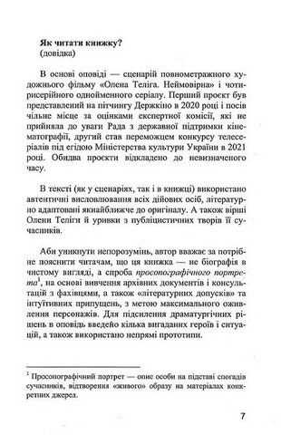 В основі оповіді — сценарій повнометражного художнього фільму «Олена Теліга. Неймовірна» і чотирисерійного серіалу.