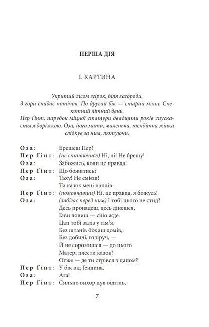 П’єса «Пер Ґінт» багатогранна, глибока й актуальна. А написано ж її 1867 року! У ній є все: кохання, зрада, мріяння, зіткнення з реаліями життя, політика, романтика, природа, бунт, гріхи, віра, муки, метання, музика тощо.