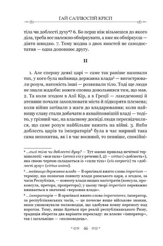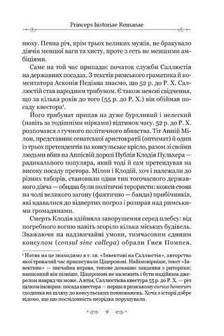 Ґай Саллюстій Крісп (бл. 86 р. до Р. Х. — бл. 35 р. до Р. Х.) — чільний римський історіограф, видатний стиліст, реформатор жанру. Тонкий психолог і майстер підозри, Саллюстій захоплював і надихав своїми творами не одне покоління європейських істориків, письменників та філософів — від Таціта до Момзена, від Сенеки до Ніцше. «Змова Катіліни» — дебютна монографія автора, присвячена подіям 63 р. до Р. Х., коли збіднілий патрицій Луцій Серґій Катіліна спробував учинити в Римі збройний переворот і захопити державну владу.