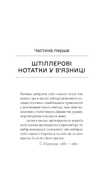 Невдячна справа зривати маски з інших, а зривати маску із себе — й поготів. Лише поодинокі сміливці наважуються побачити своє справжнє обличчя. На залізничному вокзалі поліція арештовує чоловіка, схожого на Штіллера. Хоча той запевняє, що він — Вайт. Однак йому не вірять. Сидячи в буцегарні Вайт намагається зі слів довколишніх скласти образ Штіллера. А ще збагнути, чому дружина прокурора переказує йому вітання? Чому колишня балерина Юліка так прагне зустрітися з ним і запевняє, що він і є Штіллер, її чоловік. І хіба не дивно, що єдиний, хто насправді розуміє його, це прокурор? «Я — не Штіллер...» Від перших слів роману й аж до останніх він один супроти світу, супроти юрми. Його життя сповнене гірких розчарувань і поразок, а втім, це його шлях до себе справжнього... Чи вдасться герою відстояти себе? Чи зможе відкинути ролі, начеплені на нього спільнотою? Чи вдасться йому вберегти свою ідентичність?