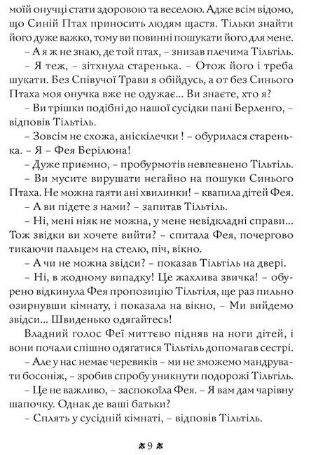 У Різдвяну ніч до маленьких брата і сестри, Тільтіля й Мітіль, приходить Фея і відправляє їх на пошуки Синього Птаха. Вона вручає дітям чарівний діамант, з допомогою якого вони можуть бачити душі предметів, стихій, тварин… Пес, Кішка, Цукор, Хліб, Вогонь, Вода перевтілюються на людиноподібних істот зі своїми звичками, характерами. В товаристві з ними Тільтіль і Мітіль шукають Синього Птаха в Країні Спогадів, Палаці Ночі, Царстві Майбутнього… Переказ у формі прозової казки знаменитої філософської п’єси-казки лауреата Нобелівської премії, всесвітньо відомого бельгійського письменника і драматурга Моріса Метерлінка «Синій Птах» пропонується дітям та юнацтву, а також усім, хто не байдужий до цікавих казок.