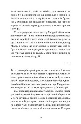 \nЗ роками Есме усвідомлює: не всі слова мають однакову вагу. Досвід жінок — часто непочутий, а мова, що його описує, — легко стирається з пам’яті. Тож, присвятивши своє життя роботі над Оксфордським словником, Есме потай створює інший — Словник загублених слів.