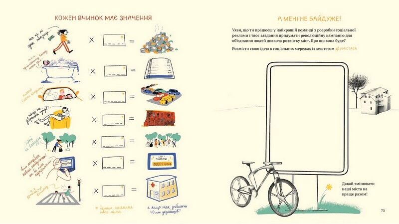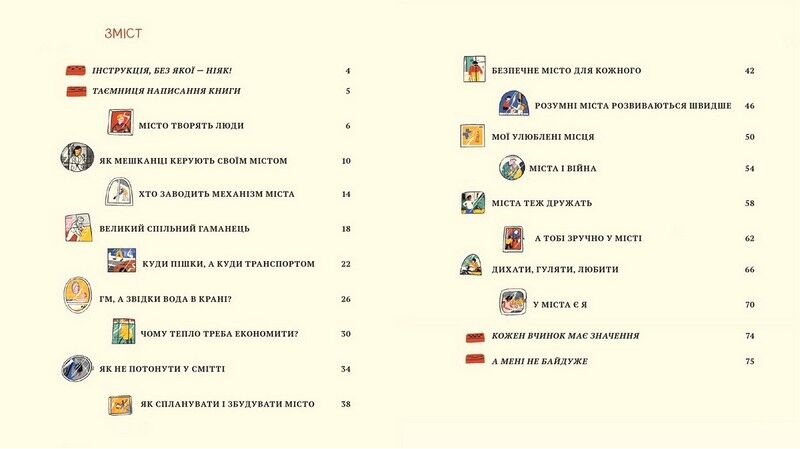 Але найважливіше, ця книжка є своєрідною інструкцією, як діти вже сьогодні можуть впливати на місто – які дитячі організації та ініціативи працюють в Україні та світі, до яких можна долучитись чи якими можна надихнутись і зробити щось своє,щоб змінити життяв місті на краще.