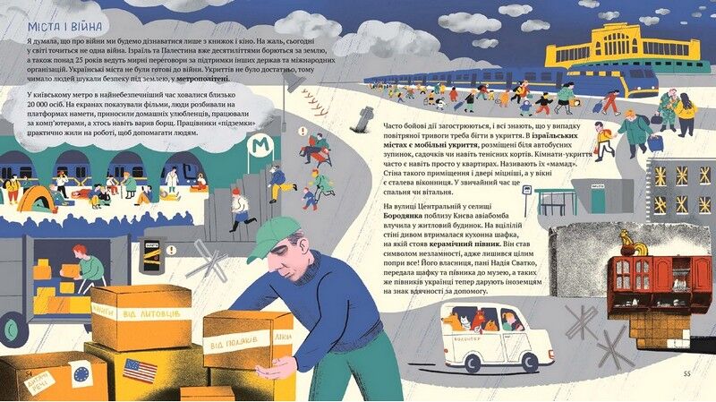 А ще у ній багато цікавих фактів про міста у різних куточках світу – де з’явилась перша пішохідна вулиця, в якому місті найстаріше метро, а де найвища будівля і хто подарував Статую Свободи Нью-Йорку та багато інших.