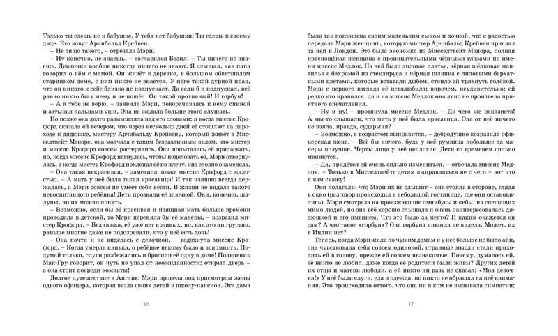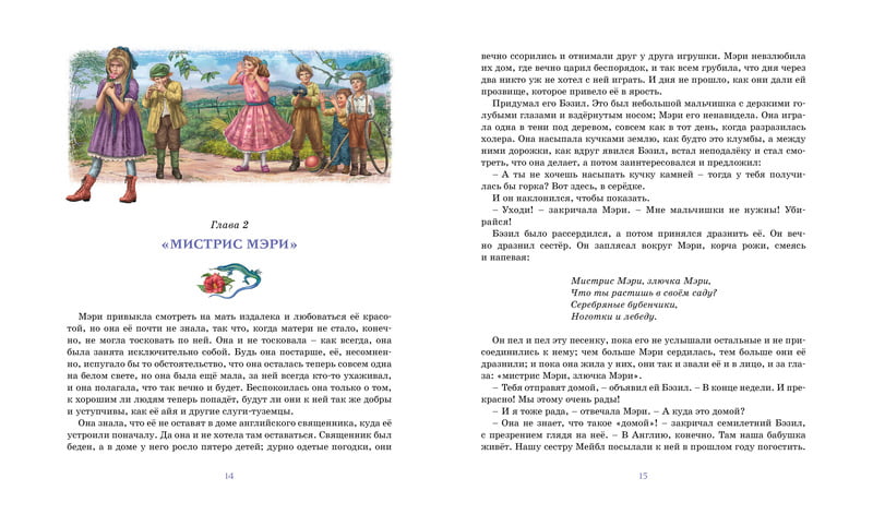 Фрэнсис Бёрнетт – знаменитая английская писательница, её повесть «Таинственный сад» вот уже более ста лет является одной из самых любимых книг детей всего мира. Это история о судьбе рано осиротевшей юной Мэри Леннокс, росшей одинокой, озлобленной, капризной, не умевшей ценить добро и дружбу. Поселившись в поместье своего дяди, она однажды находит ключ от заброшенного сада. С этого момента жизнь девочки преображается, она обретает друзей, меняется её отношение к людям, ко всему окружающему – и жизнь играет совсем другими красками.