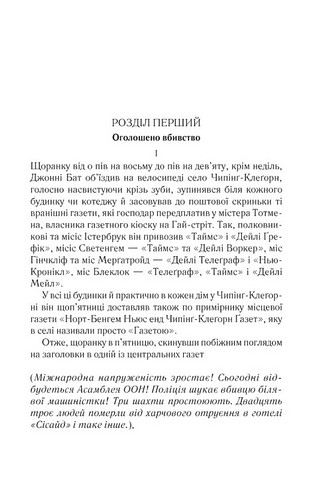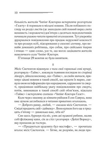Оголошення в щоденній газеті неабияк заінтригувало мешканців англійської провінції: їх запрошено на дивну виставу — вбивство. Охочі подивитися на це, а їх виявилося чимало, певно, забули, що весь світ — театр, а люди в ньому — актори, а не глядачі. Тож ролі жертв уже розподілено…