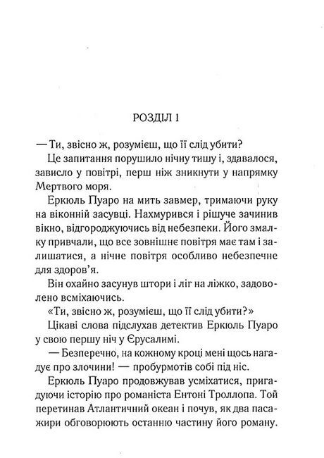 Священний Єрусалим. Неперевершений детектив Пуаро гадав, що проведе тут чудову відпустку, однак у першу ж ніч став свідком моторошної розмови. Юнак Реймонд Бойнтон сказав сестрі, що вони мають убити… власну матір. Заможна місіс Бойнтон — деспотична садистка й колишня тюремна наглядачка. Вона справжній тиран, якого ненавидять усі члени родини, але не сміють суперечити. Одного дня місіс Бойнтон знаходять мертвою. Легендарний Пуаро не може пройти повз цей злочин. Він береться визначити вбивцю за добу й уже має підозрюваних. Та що, як насправді ніякого вбивці не існує? І те, що сталося, зовсім не звичайний злочин…