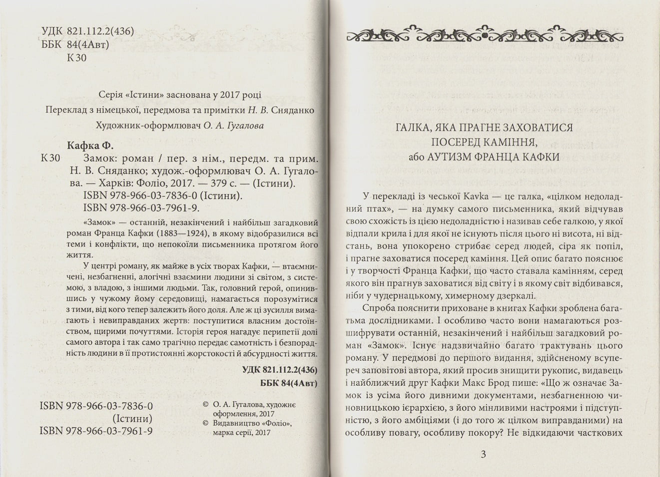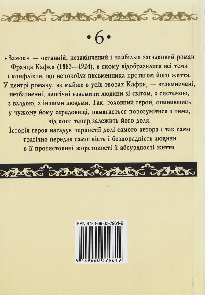 «Замок» — останній, незакінчений і найбільш загадковий роман Франца Кафки (1883—1924), в якому відобразилися всі теми і конфлікти, що непокоїли письменника протягом його життя.