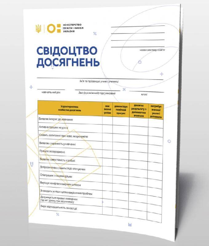 НУШ Свідоцтво досягнень учня 1 класу Зірка. Новий документ, що дає уявлення батькам про успішність діток 1 класу. Оскільки у Новій українській школі відсутнє оцінювання як процес виставлення балів за навчальні досягнення учнів, Міністерство освіти і науки України пропонує нову форму оцінювання досягнень школярів Свідоцтво досягнень.