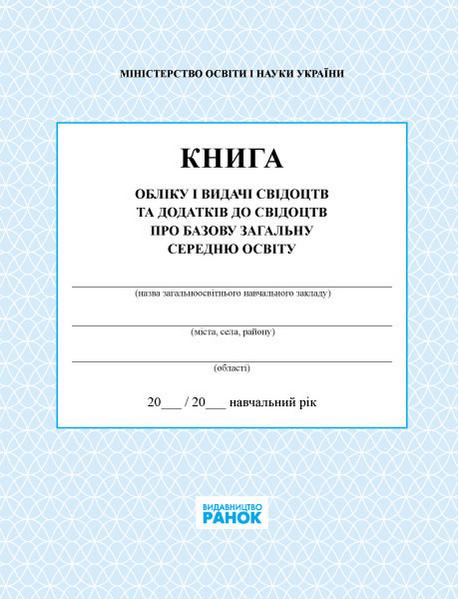 Книга обліку і видачі свідоцтв та додатків до свідоцтв про базову загальну середню освіту Ранок НОВА 2014 Спец цена. Загальна документація. Книга обліку і видачі свідоцтв та додатків до свідоцтв про базову загальну середню освіту.