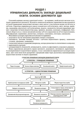 Видання містить актуальні матеріали, які допоможуть керівникам закладів дошкільної освіти визначити стратегію управління, забезпечити умови розвитку педагогічної системи, більш ефективно управляти матеріальними та людськими ресурсами, а також: орієнтовні зразки управлінських документів; блочну систему контролю якості та результативності навчальної роботи; рекомендації щодо інклюзивної освіти в ЗДО тощо.