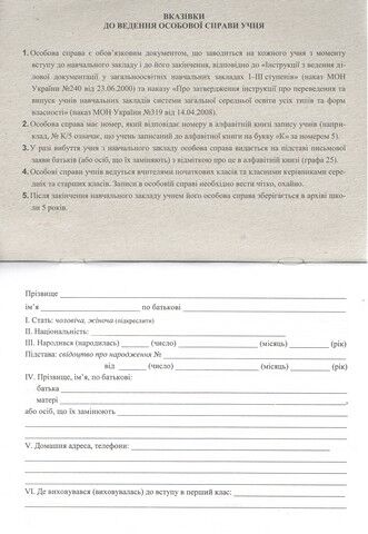 ДО ВЕДЕННЯ ОСОБОВОЇ СПРАВИ УЧНЯ