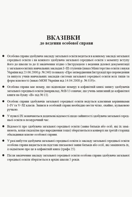 Особова справа учня для загальноосвітніх навчальних закладів видавництва: Ранок
