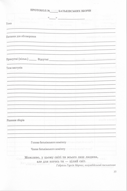 Облік роботи з батьками класу
