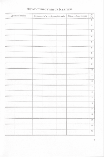 Відомості про учнів та їх батьків