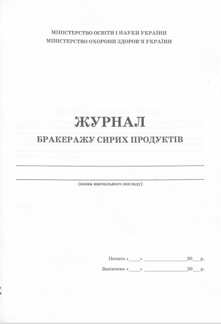 Журнал бракеражу сирих продуктів ПЕТ Ділова документація для шкіл