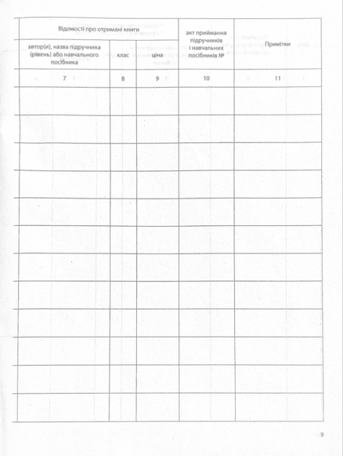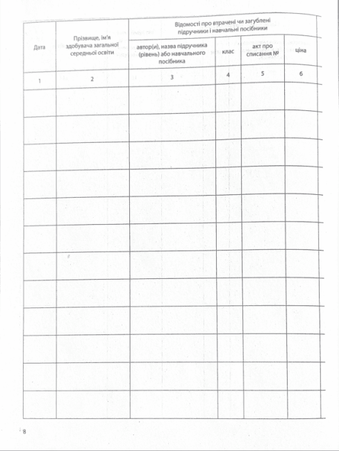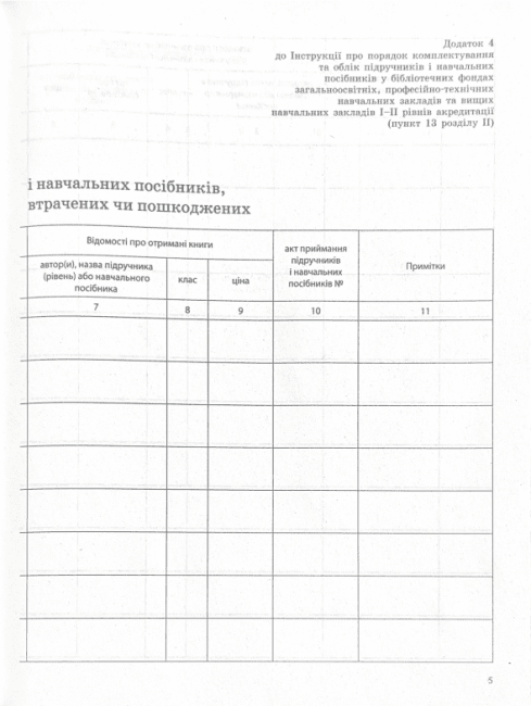 Журнал обліку підручників і навчальних посібників що приймаються замість втрачених чи пошкоджених Ранок