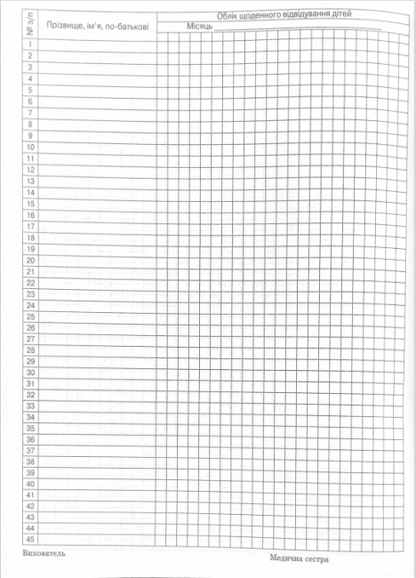 Журнал обліку щоденного відвідування дітьми групи Ранок. Документація для дошкільних навчальних закладів.