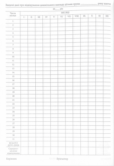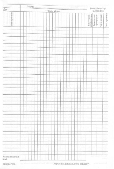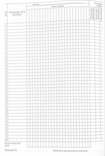 Журнал обліку щоденного відвідування групи дітьми дошкільного закладу №